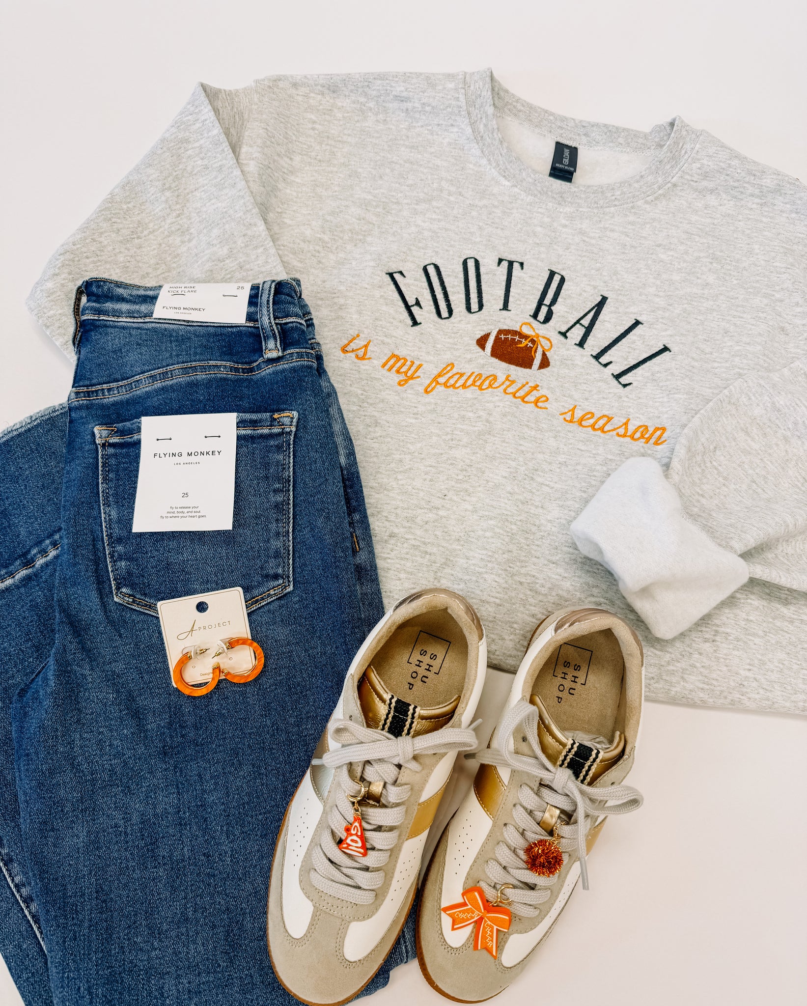 Get cozy this fall with our Ash Grey Crewneck, featuring a playful embroidered football graphic! Perfect for game days or casual weekends, its soft fabric keeps you comfy while you cheer on the Vols. Show off your love for football season in style!