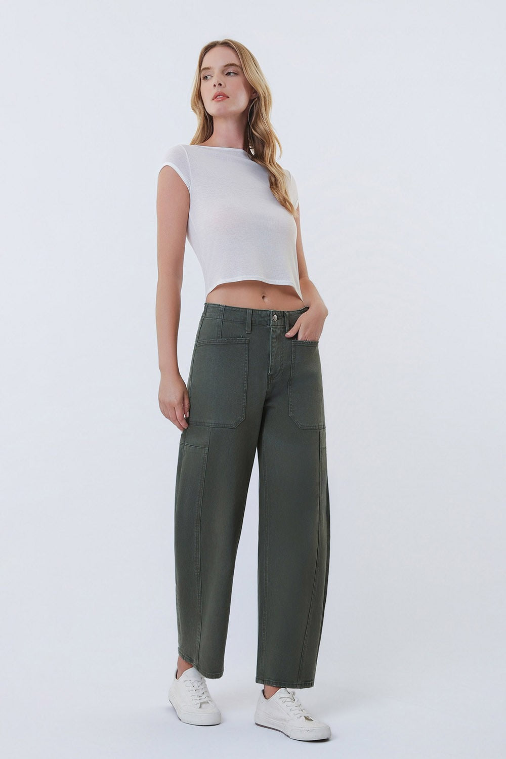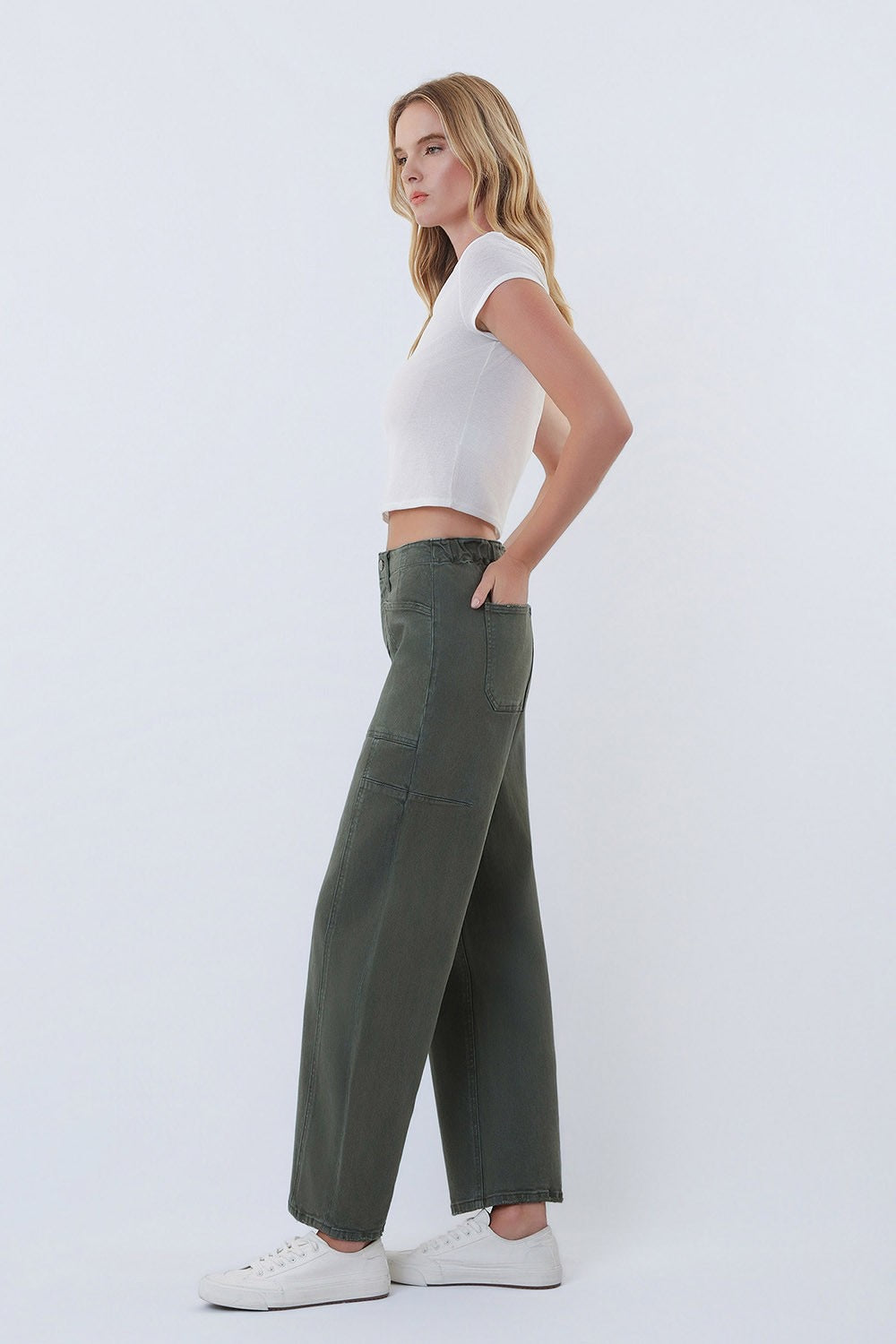 Meet your new denim obsession—Flying Monkey's Super High Rise Barrel Jeans in rich deep forest green. With an elastic waistband that hugs you just right and a barrel cut that's absolutely everywhere right now, comfort meets cool factor. The signature front pocket detail gives these bestseller-status jeans extra personality. Whether you're running errands or hitting the town, this trendy silhouette keeps you looking effortlessly chic all day long.
